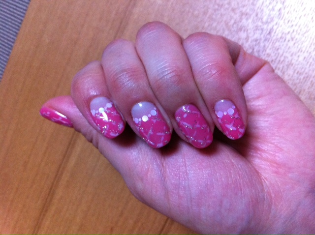 思い切って 明るい色の ネイルに しました。