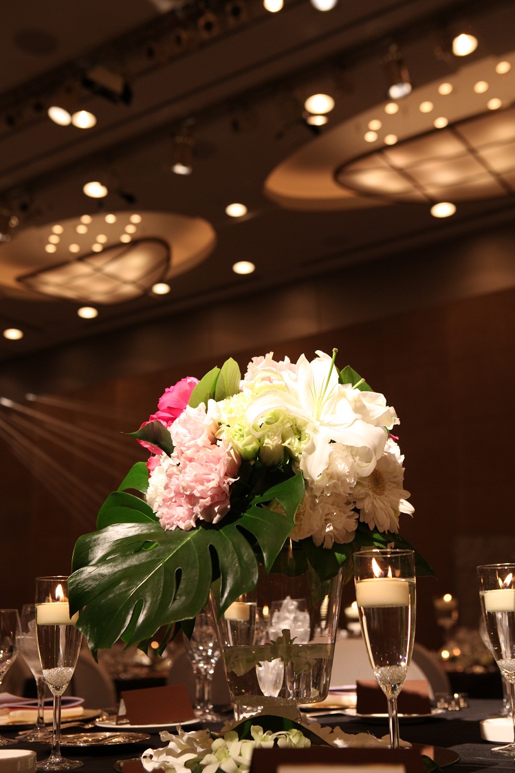 ▲ 結婚式の 会場装花にも モンステラを 使ったよ。
